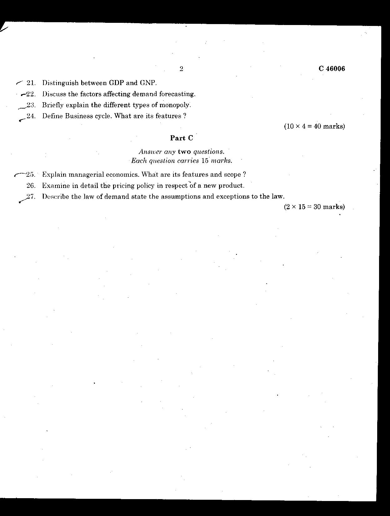 managerial economics sample question papers